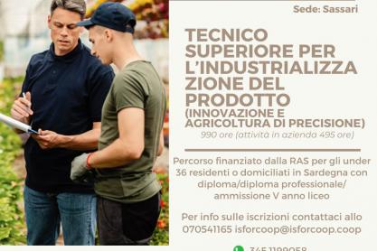 2. TECNICO SUPERIORE PER L'INDUSTRIALIZZAZIONE DEL PRODOTTO (INNOVAZIONE DELLE PROCEDURE AGRICOLE E AGRICOLTURA DI PRECISIONE) - SEDE: SASSARI - codice per l'iscrizione: 2023RTS2271351